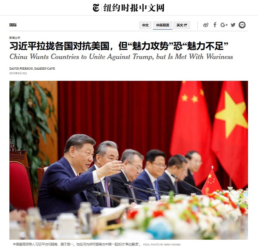 중국 못지않게 대미 무역 비중이 큰 동남아 국가들로서는 트럼프 행정부의 보복이 두려웠겠죠. 하지만 막대한 정부 보조금을 바탕으로 한 덤핑 수출, 강압적인 무역 정책 등으로 인해 중국이 동남아 국가의 인심을 잃은 측면도 적잖았다고 뉴욕타임스(NYT)는 분석했습니다. NYT 중국어판은 “시 주석이 동남아에서 매력 공세를 펼쳤지만, 매력이 부족했다”고 꼬집었어요.